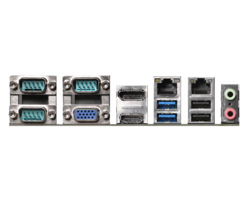 - 1 x PCIe x16 Gen3, 4 x USB 3.2 Gen1, 4 x USB 2.0, 1 x M.2 Key E, 1 x M.2 Key M, 3 x COM, 6 x COM, 4 x SATA3